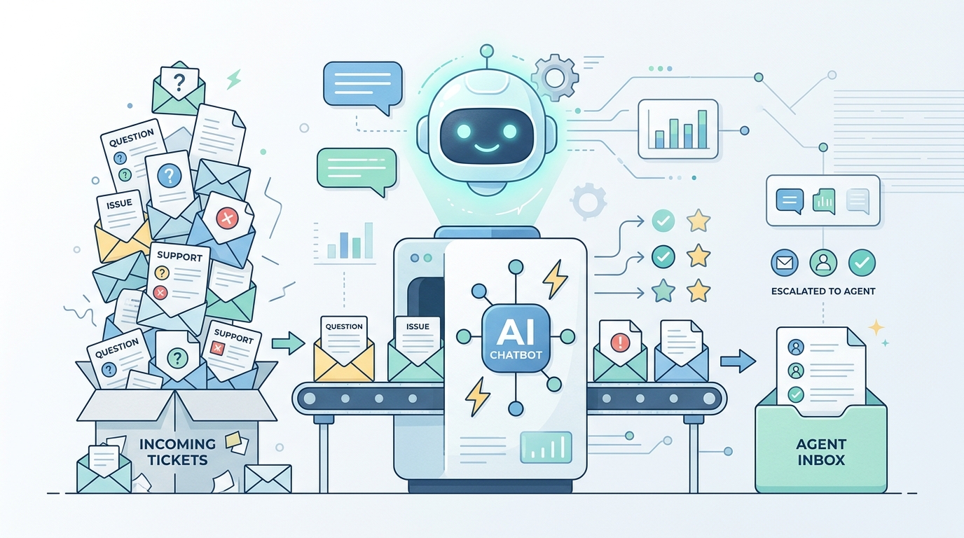 This article covers the eight specific mechanisms through which AI chatbots reduce inbound ticket volume, with current data, real-world case studies, and honest assessments of where each approach works - and where it falls short.